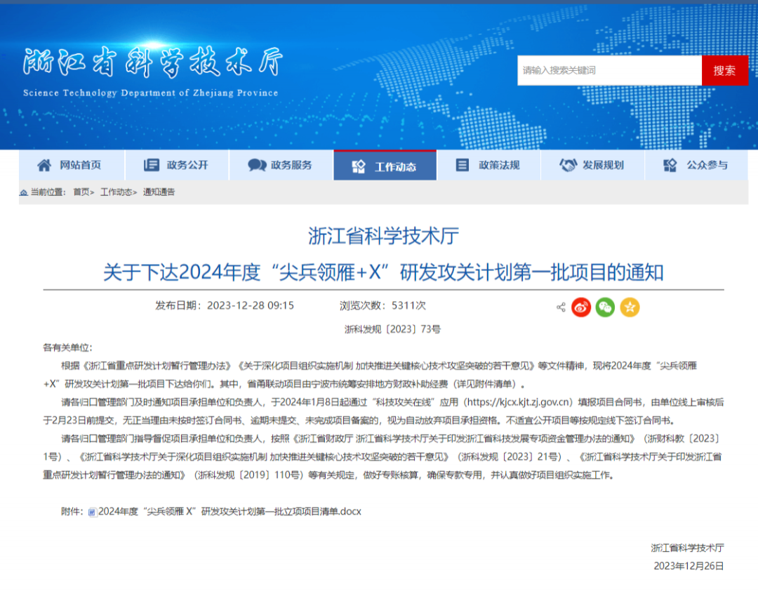 近日,浙江省科学技术厅发布2024年度“尖兵领雁+X”研发攻关计划第一批项目立项清单。资产公司下属企业台州市环境科学设计研究院有限公司牵头和参与的《工业废水处理高效功能菌剂开发与应用-医药化工废水处理高效功能菌剂开发与应用》等3个项目入选。